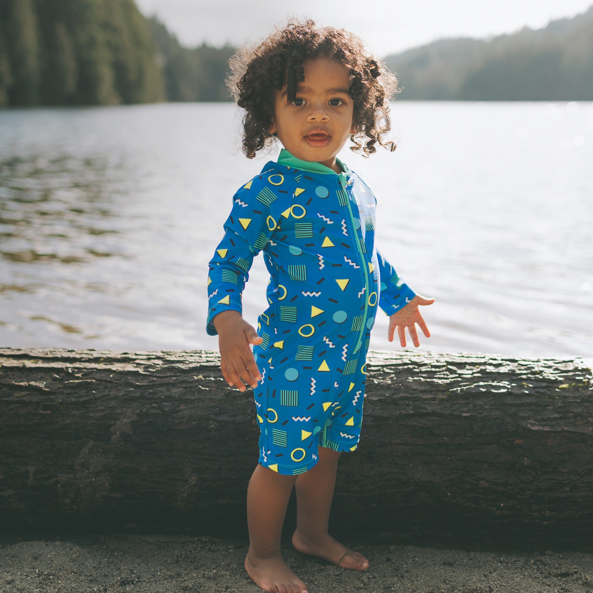 Our infant and toddler shorty sunsuits (sizes NB–4T) are designed for sunny adventures, water play, and all-day comfort. With a shorter, above-the-knee cut, they offer a light, easy-to-wear silhouette compared to our full-length sunsuits while still being made from the same UPF 50+ sun-protective swim fabric. The material is soft, stretchy, breathable and quick-drying - ideal for babies and toddlers in and out of the water.