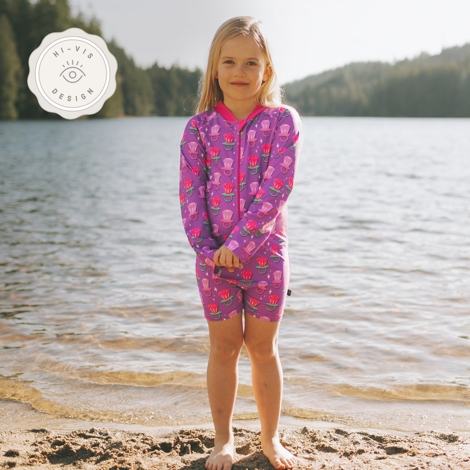 Depending on the style, some shorty sunsuits include a built-in inseam zipper for fast diaper or potty changes (listed in each product description), while others feature a clean, zipper-free design for a simple, comfortable fit. Both options allow for excellent mobility and are perfect for beach days, splash pads, backyard play, swimming lessons, and tropical vacations.